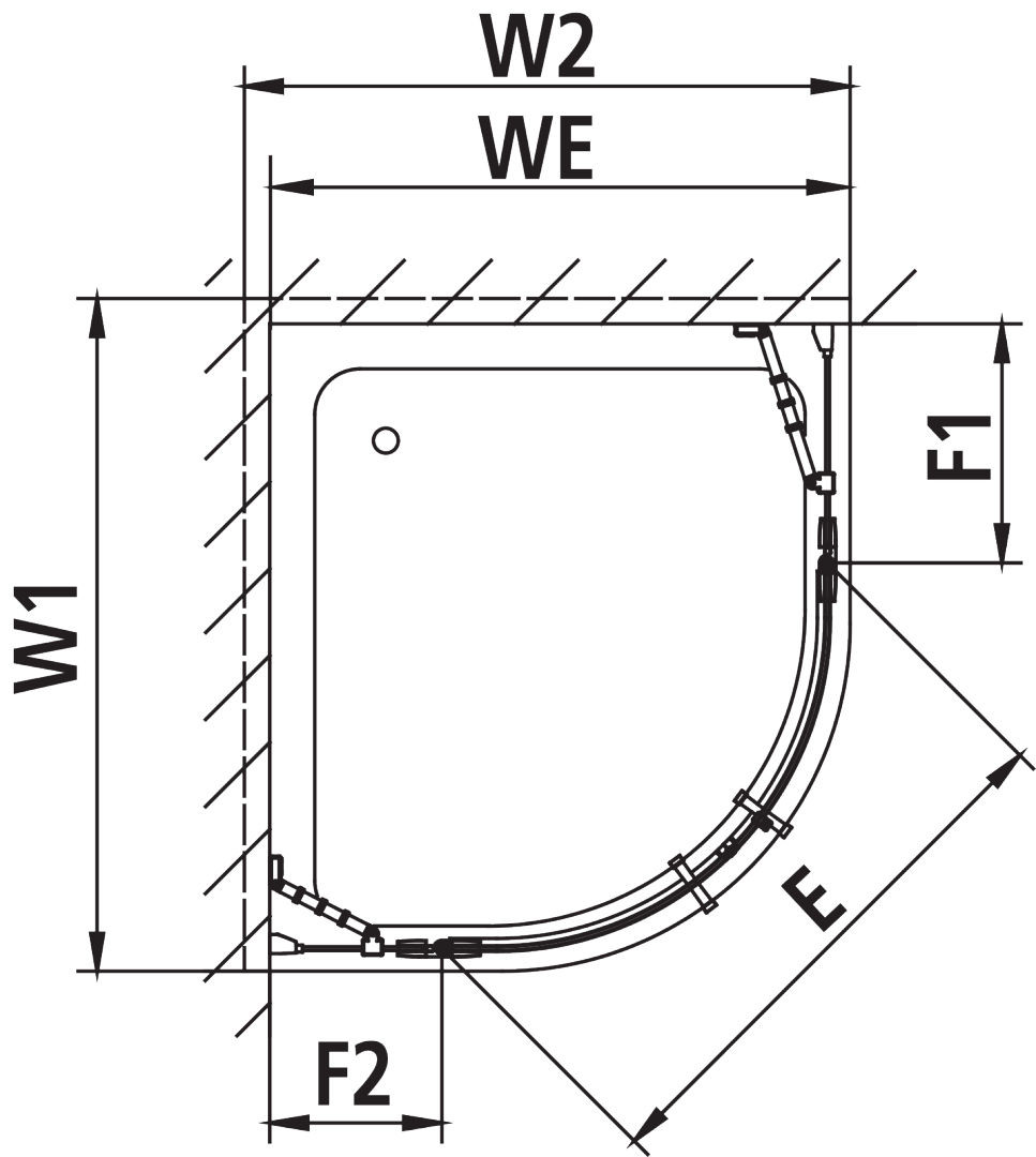 Kermi Viertelkreis-Pendeltür Filia XP mit Festfeldern 90x120x200 cm, silber hochglanz, ESG klar Clean, Radius 50 ZKFXP50V7120VPK