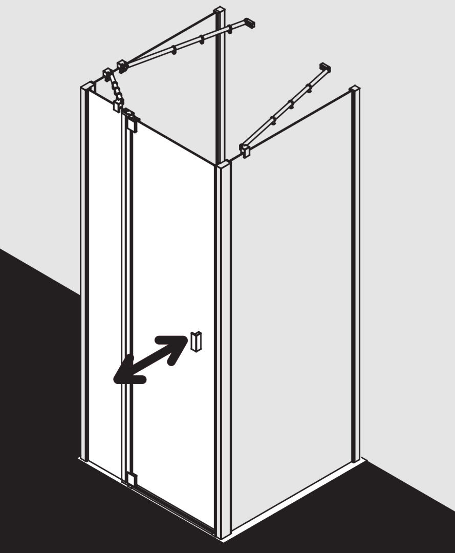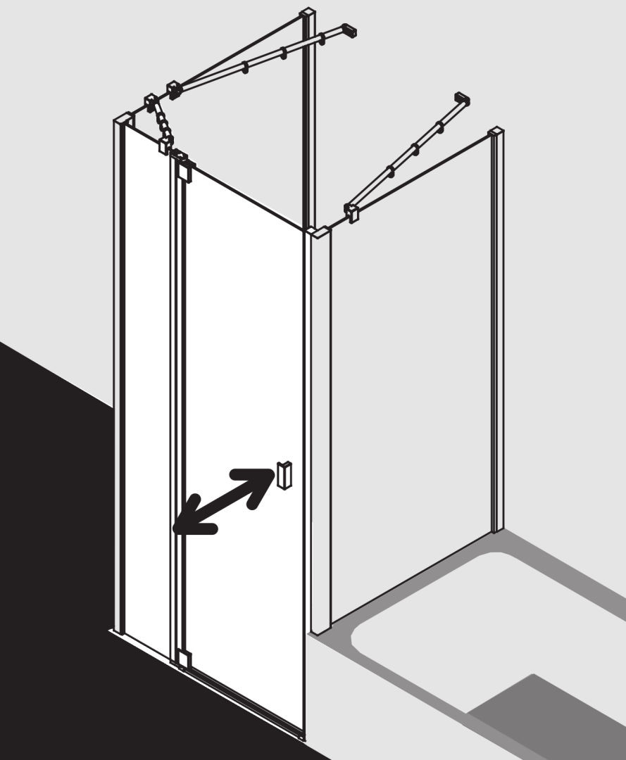 zum Einbau in Nische und kombinierbar mit RA TWD Seitenwand/RA TVD Seitenwand verkürzt auf Badewanne, teilgerahmt, mit einem Glasflügel, nach innen und außen öffnend und einem Festfeld, mit Stabilisierung (innen), Glasstärke 6 mm Einscheiben-Sicherheitsglas nach EN 12150, optional mit Pflegeleicht-Beschichtung, Profile aus eloxiertem Aluminium, Gelenkbeschläge und Griffe aus Metall, Verstellmöglichkeit je Wandprofil 10 mm, im Gelenkbeschlag 20 mm, bei Oberfläche silber mattglanz Griffe, Gelenke und Verbindungen in chrom, Gelenkprofil mit Hebe-Senk-Mechanismus, durchgehende Magnetleisten und Dichtprofile, waagerechte Dichtleiste mit Wasserabpralleffekt, ohne Bodenschwelle (bodenfrei) installierbar, mit Befestigungsmaterial, geprüft nach DIN EN 14428, waagerechte Schräge darf max. 5 mm betragen