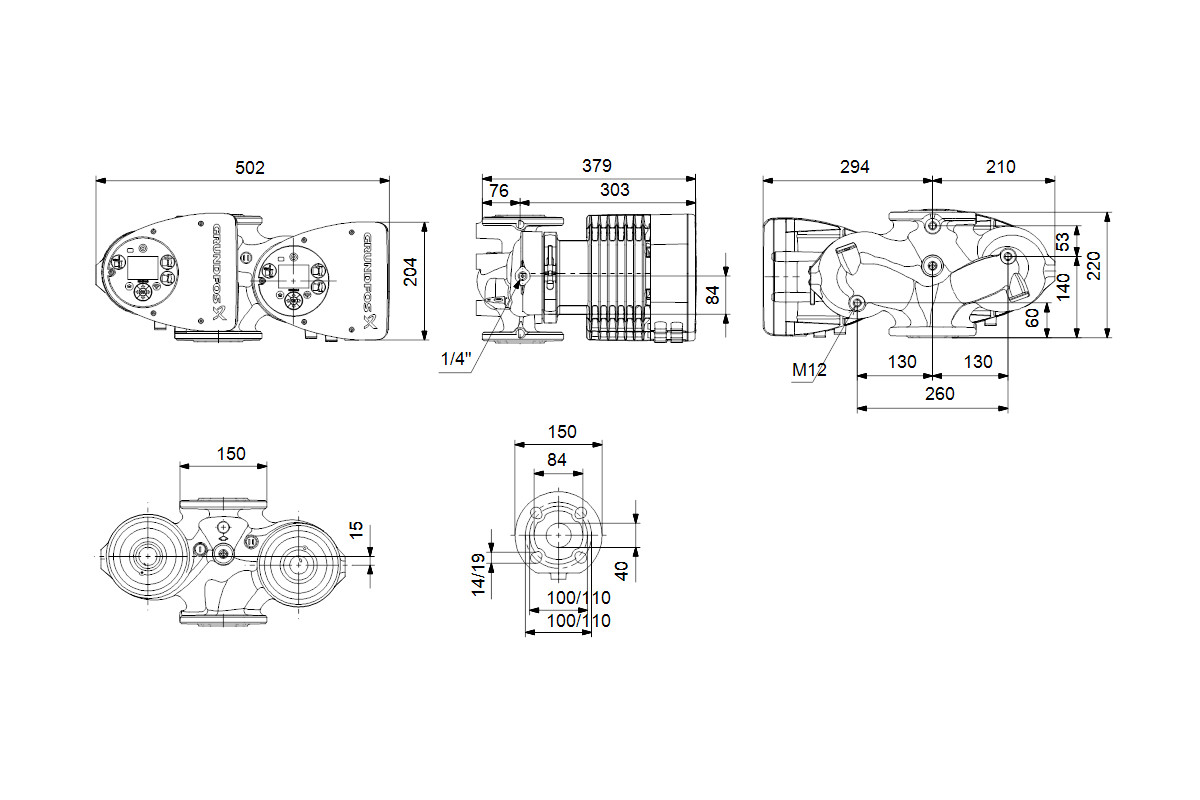 Grundfos Umwälzdoppelpumpe MAGNA3 D 32-80F, 220 mm, DN 32, PN 16, 230 V GR98333879