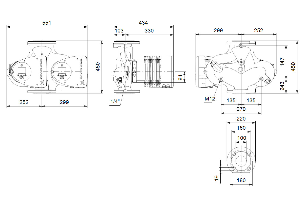 Grundfos Umwälzdoppelpumpe MAGNA3 D 32-100F, 220 mm, DN 32, PN 16, 230 V GR97924839