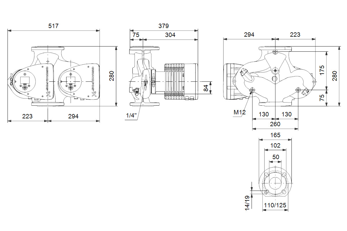 Grundfos Umwälzdoppelpumpe MAGNA3 D 65-100F, 340 mm, DN 65, PN 16, 230 V