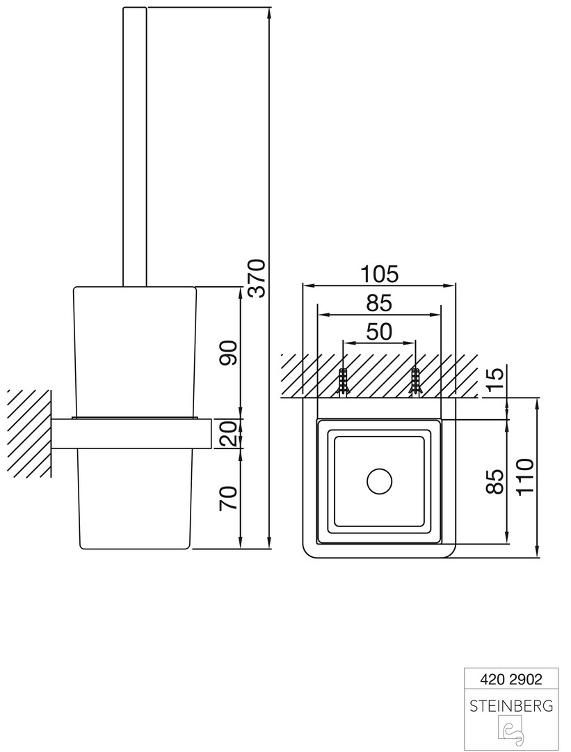 Steinberg Toilettenbürstengarnitur Serie 420 mit Glas schwarz satiniert, chrom, Messing