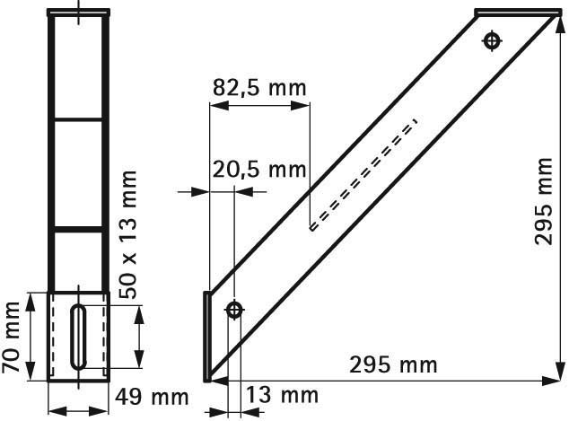 45° Verstärkungsstütze, zum Anbringen als Stützelement über, unter oder neben einer Wandkonsole, zur Erhöhung der Belastbarkeit von Schienenkonstruktionen, CO2-geschweißt, Oberflächenbeschichtung Ultra Protect 1000 Systemtechnologie, ein System für Installationen im Innen- und Außenbereich, besteht min. 1000 Std. Salzsprühtest nach DIN ISO 9227