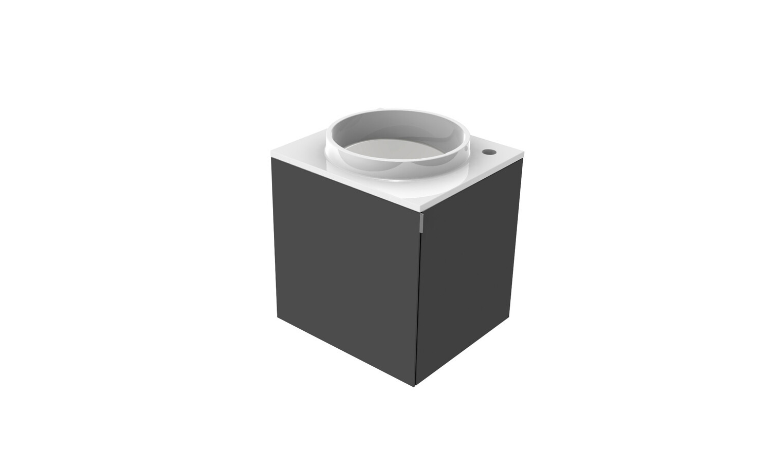 EMCO Mineralguss-Gäste-Waschtisch-Set evo 450mm, Türgriff rechts, Armaturenbohrung rechts, schwarz EC958227510