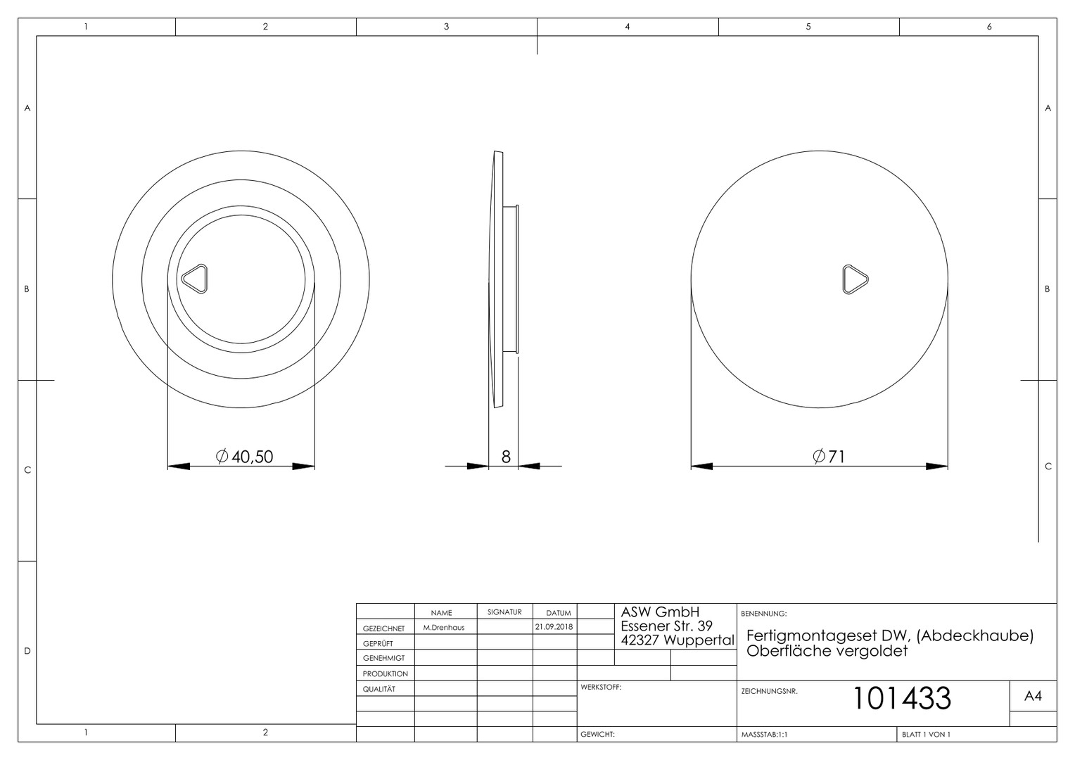 ASW Fertigmontageset DW (Abdeckhaube), vergoldet