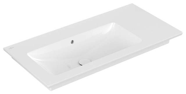 V&B Möbel-Waschtisch VENTICELLO 100 x 50 cm, ohne Hahnloch, mit Überlauf, links, weiß C-plus