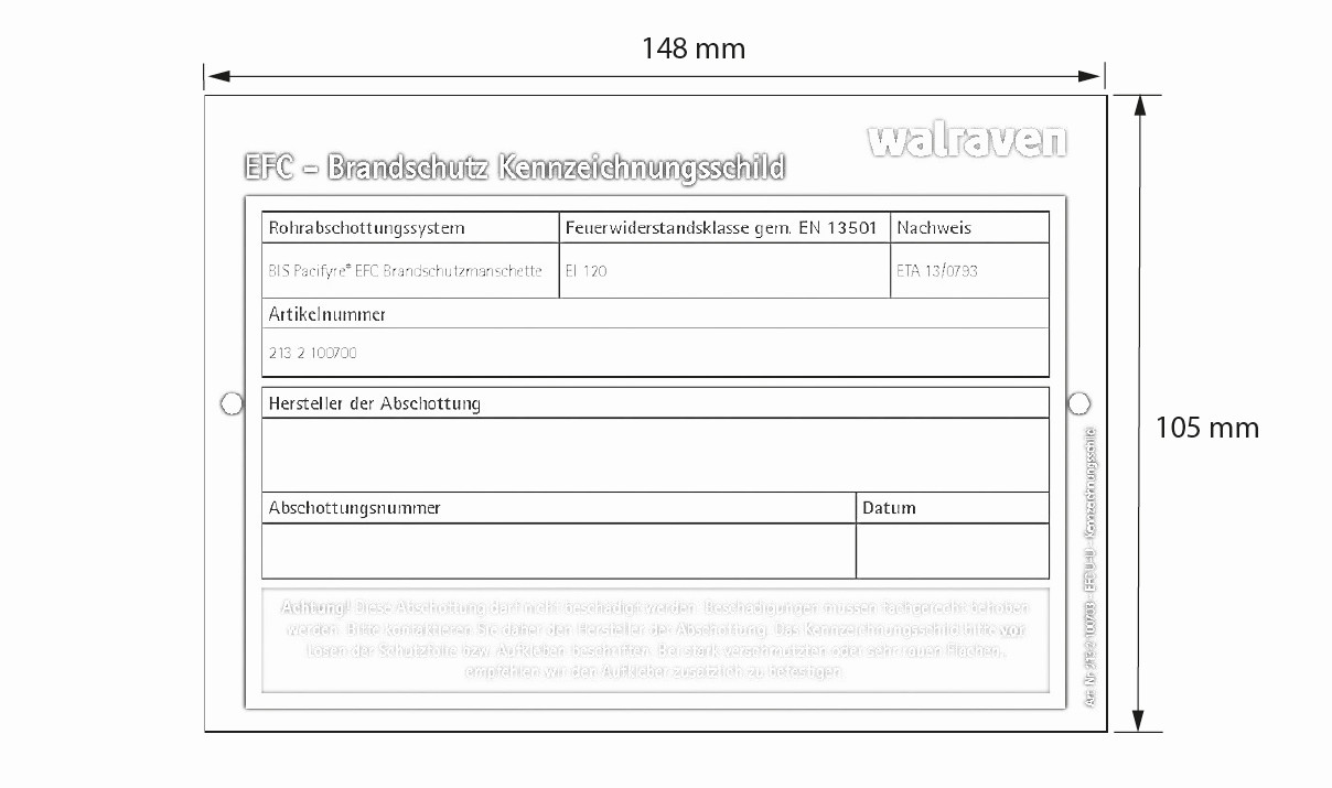Walraven Brandschutzmanschette PACIFYRE EFC Kennzeichnungsschild, für Rohrabschottung