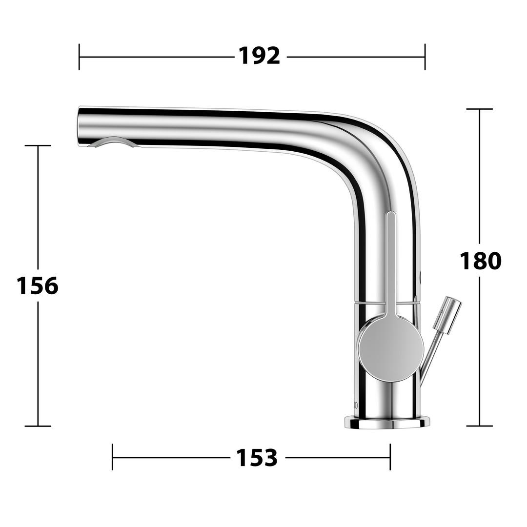Auslaufhöhe 156 mm, Schwenkwinkel +/-45°, Einlochmontage mit Schnell-Montage-System, Anschlussart Anschlussschläuche G 3/8, Mischwasserkartusche mit keramischen Dichtscheiben, Strahlregler M 24 x 1, Strahlwinkel +/-6° verstellbar, Durchflussmenge begrenzt auf 7,6 l/min, für Durchlauferhitzer geeignet, geräuschgeprüft