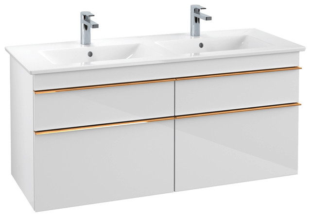 V&B Waschtisch-Unterschrank VENTICELLO 125,3x59x50,2cm, Griff Copper, Glossy White