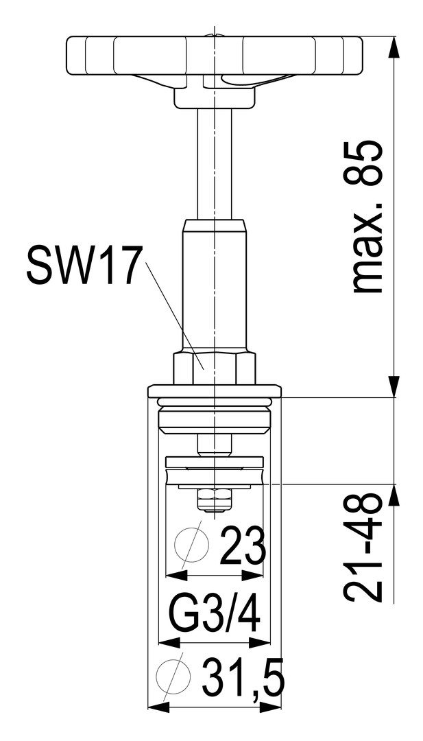 Schlösser Freistromventil-Oberteil 1816 DN 20, G 3/4, Messing, steigende Spindel XO0018162000001