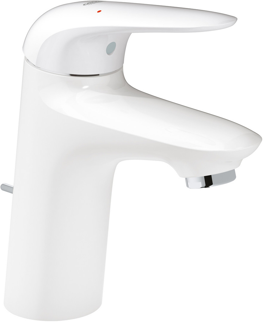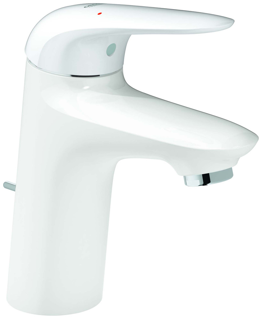 GROHE Waschtisch-Einhebelmischer Eurostyle 1/2", S-Size, mit Zugstangen-Ablaufgarnitur, geschlossener Metall-Hebelgriff, Mittelstellung kalt, moon White