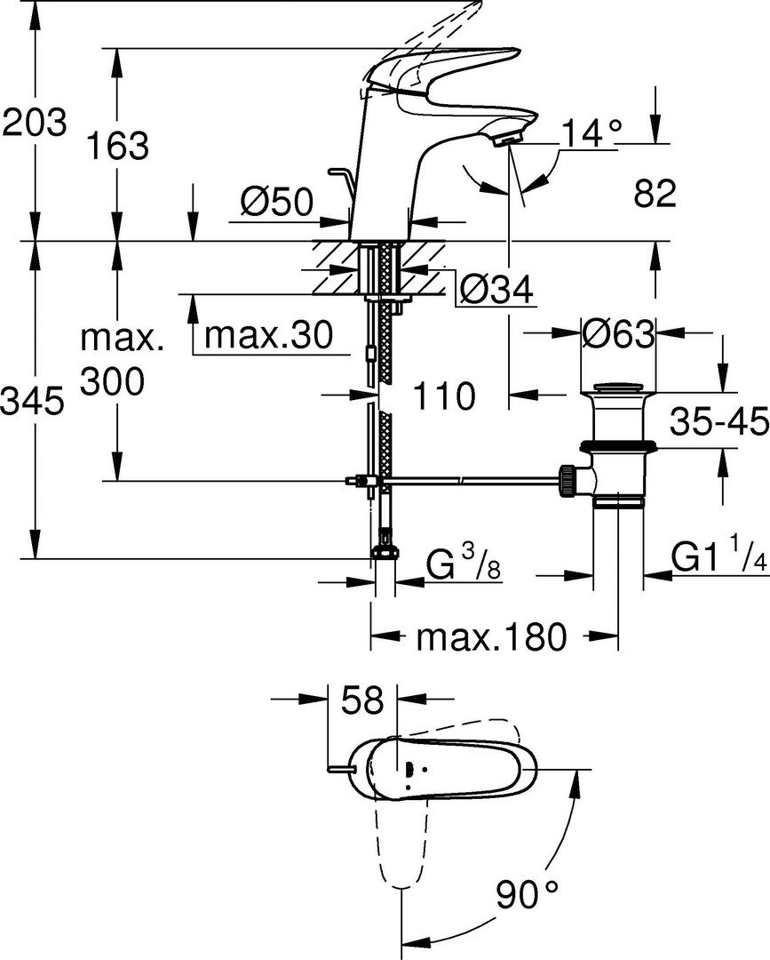 | Vorsprung Auslauf | 110 mm |