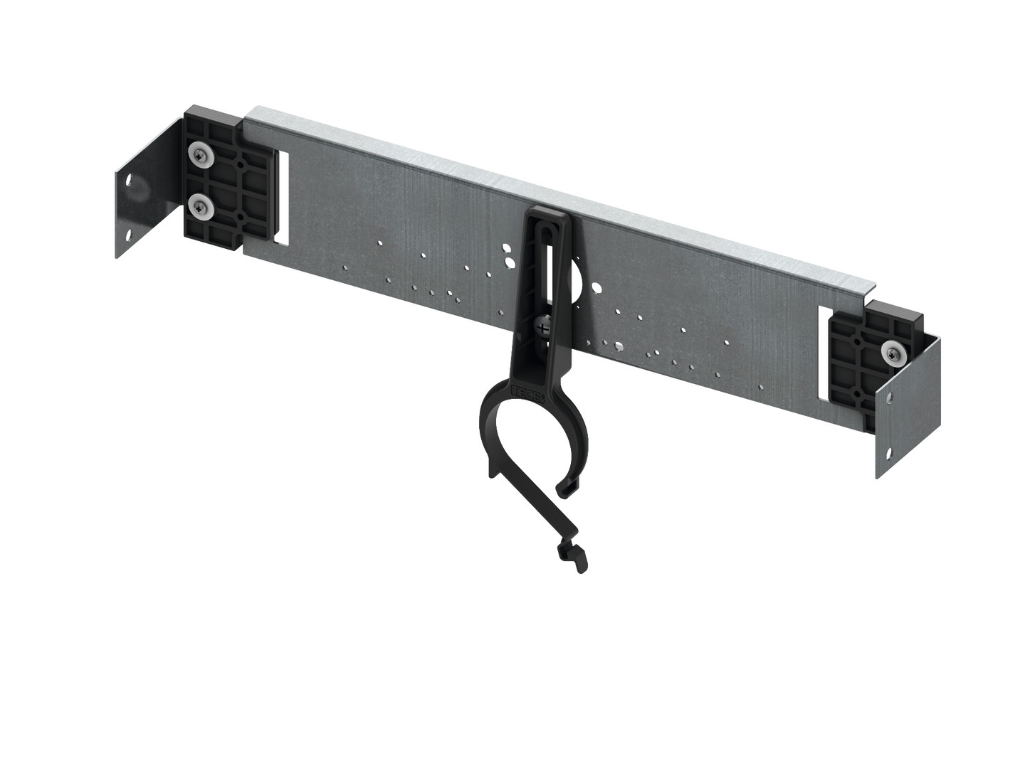 schallentkoppelte Traverse aus verzinktem Stahl, zur bauseitigen Montage von Wandscheiben, mit vormontiertem Abflusshalter