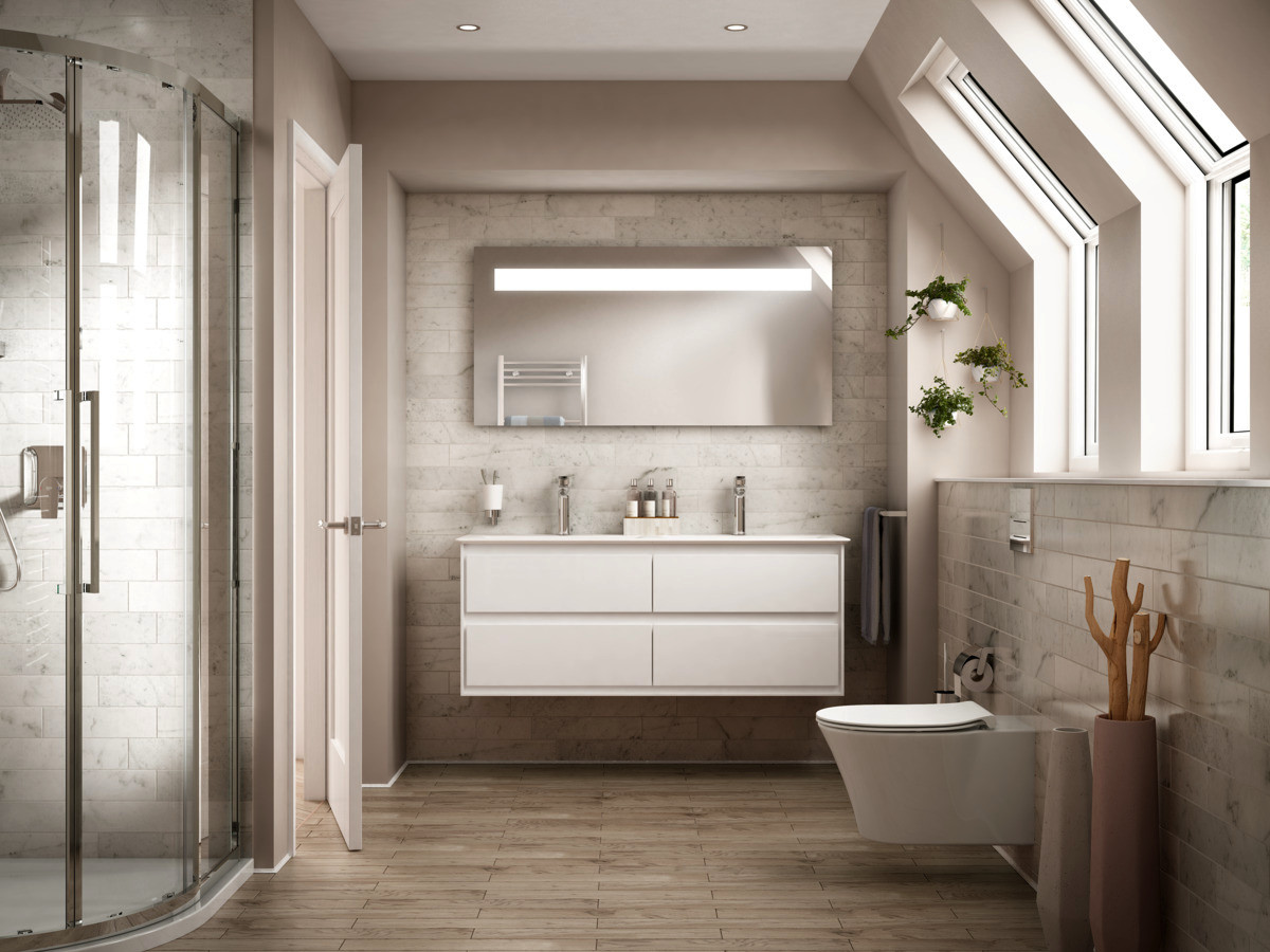 Ideal-Standard Doppelwaschtisch-Unterschrank Connect Air 4 Auszüge, 130 x 44 x 51,7 cm, weiß glänzend/weiß matt