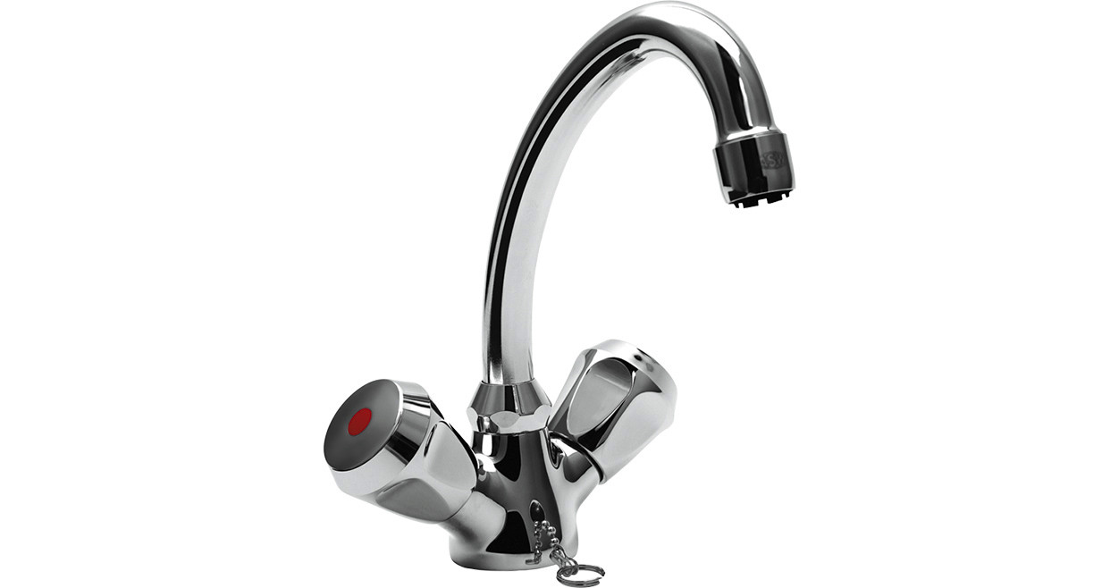 ASW Waschtisch-Zweigriff-Armatur DN 15 Niederdruck, versenkbare Kette, Messing verchromt, Haubengriff wärmeisoliert verchromt ASW115188