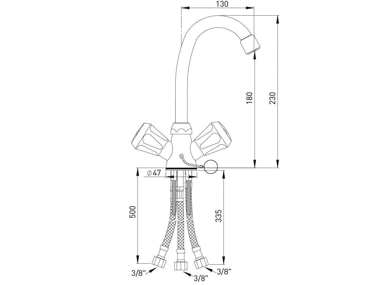 Luftsprudler, HU-Rohrauslauf 130 mm, flexible Anschlussschläuche