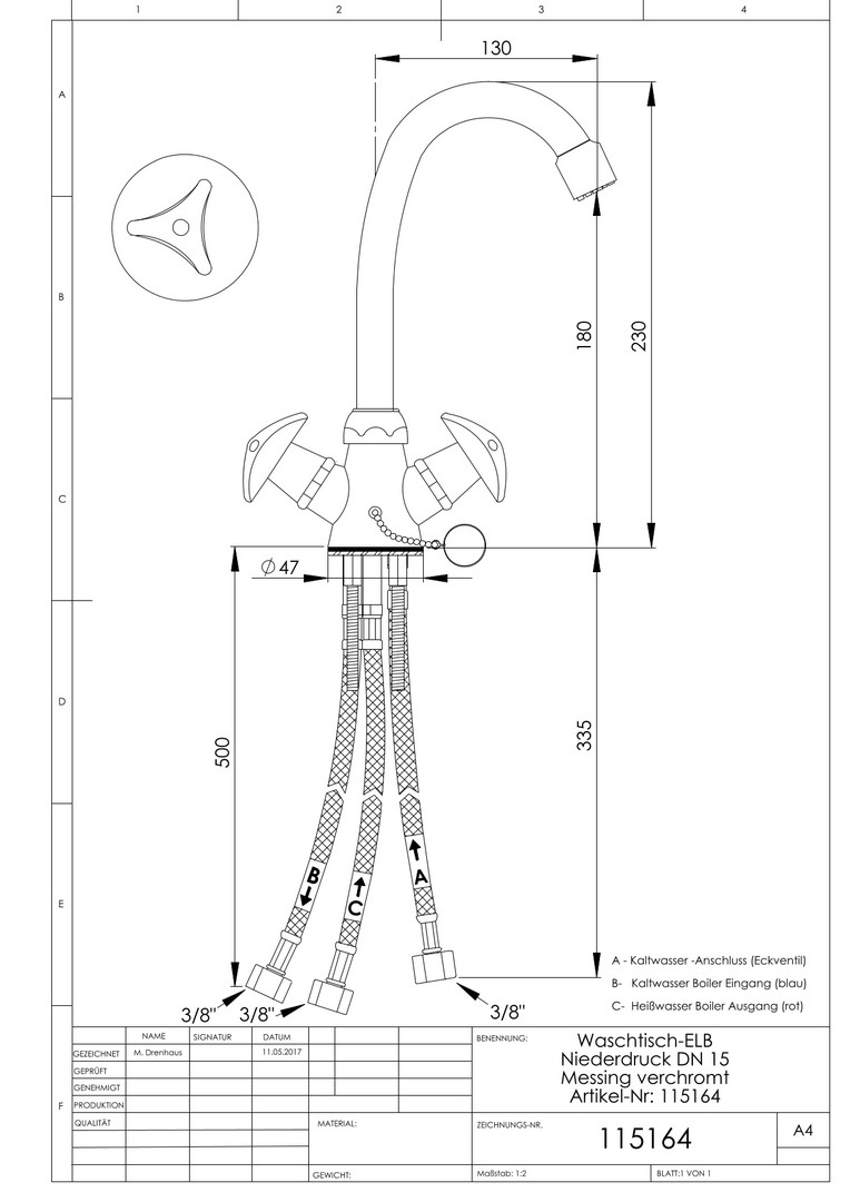 | Anschlussmaß Zufuhr | 3/8 Zoll |