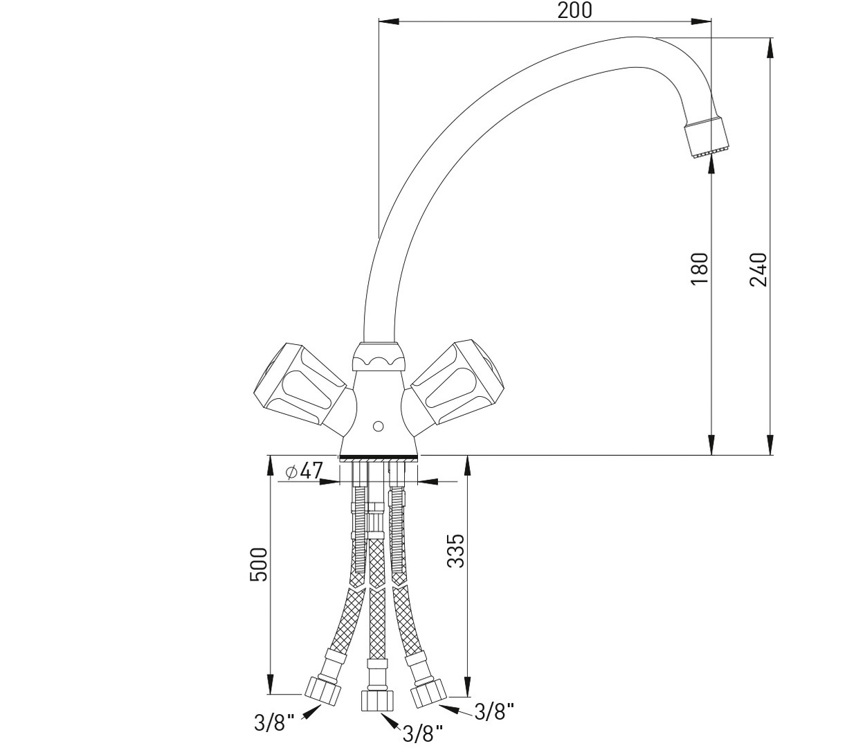 Luftsprudler, HU-Rohrauslauf 200 mm, flexible Anschlussschläuche