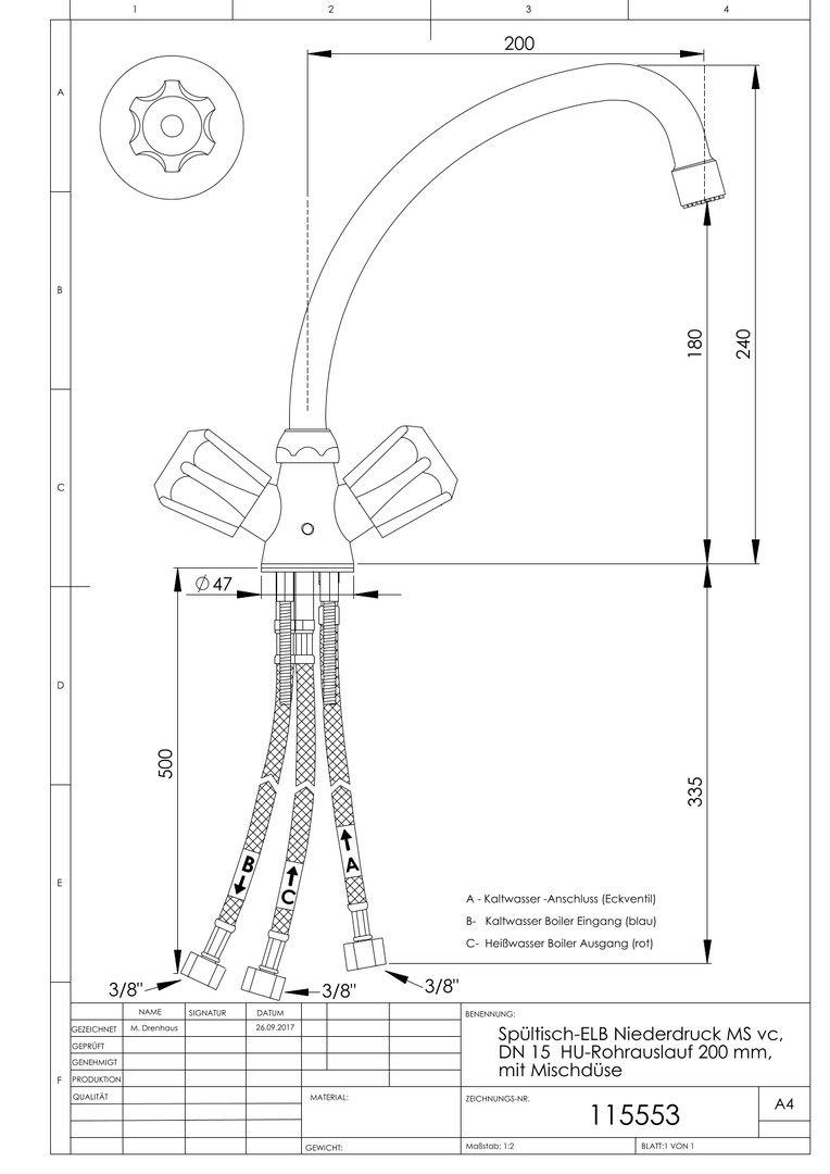 | Anschlussmaß Zufuhr | 3/8 Zoll |