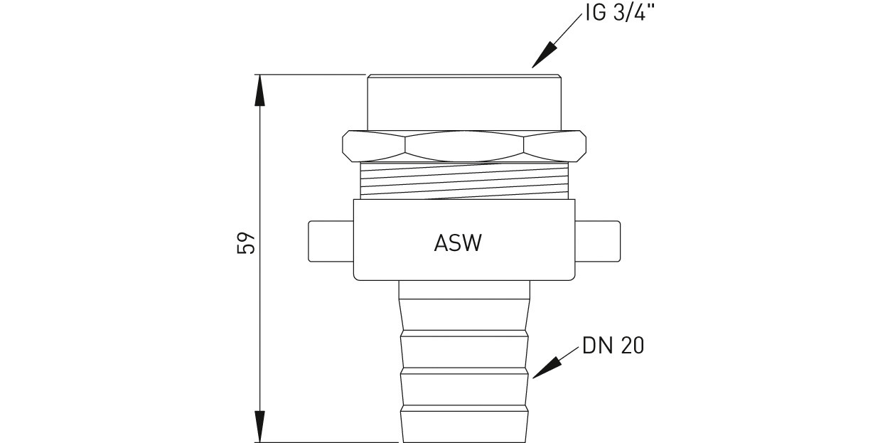 ASW Standrohrverschraubung IG 3/4" für Schlauch 3/4", flachdichtend, Messing roh ASW176203