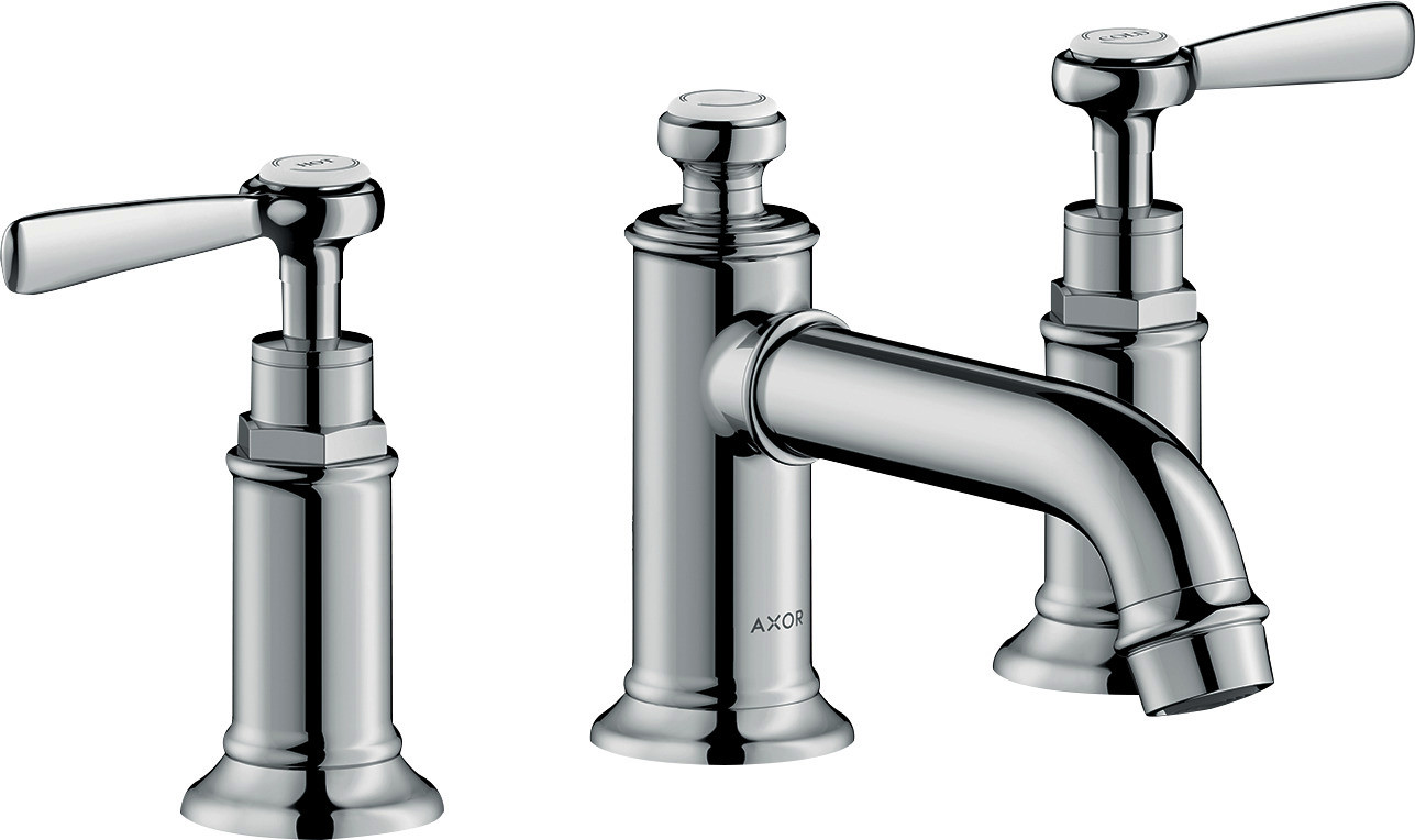 hansgrohe 3-Loch-Waschtischarmatur 30 Axor Montreux Ausladung 143mm, mit Hebelgriffe, Zugstangen-Ablaufgarnitur, chrom