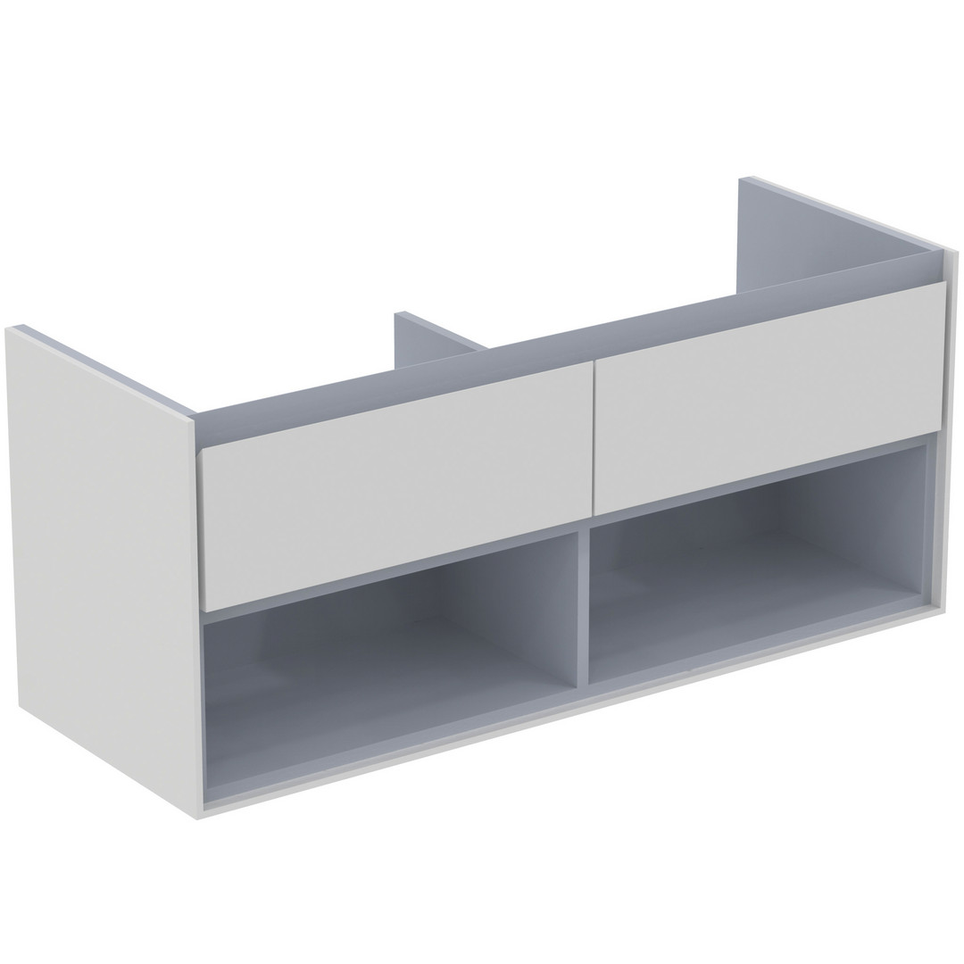 Ideal-Standard Doppelwaschtisch-Unterschrank Connect Air 2 Auszüge, 120 x 44 x 51,7 cm, weiß glänzend/hellgrau matt