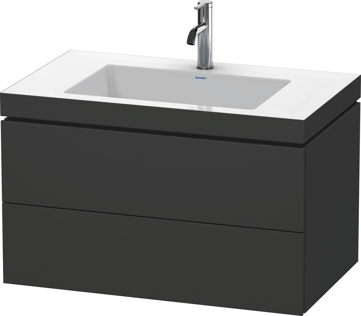 Duravit Waschtisch-Unterschrank c-bonded L-Cube 80 x 48 cm, ohne Hahnloch, schwarz hochglanz, 2 Schubkästen, wandhängend