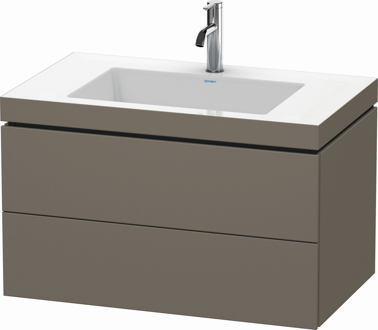 Duravit Waschtisch-Unterschrank c-bonded L-Cube 80 x 48 cm, 1 Hahnloch, flannel grey seidenmatt, 2 Schubkästen, wandhängend