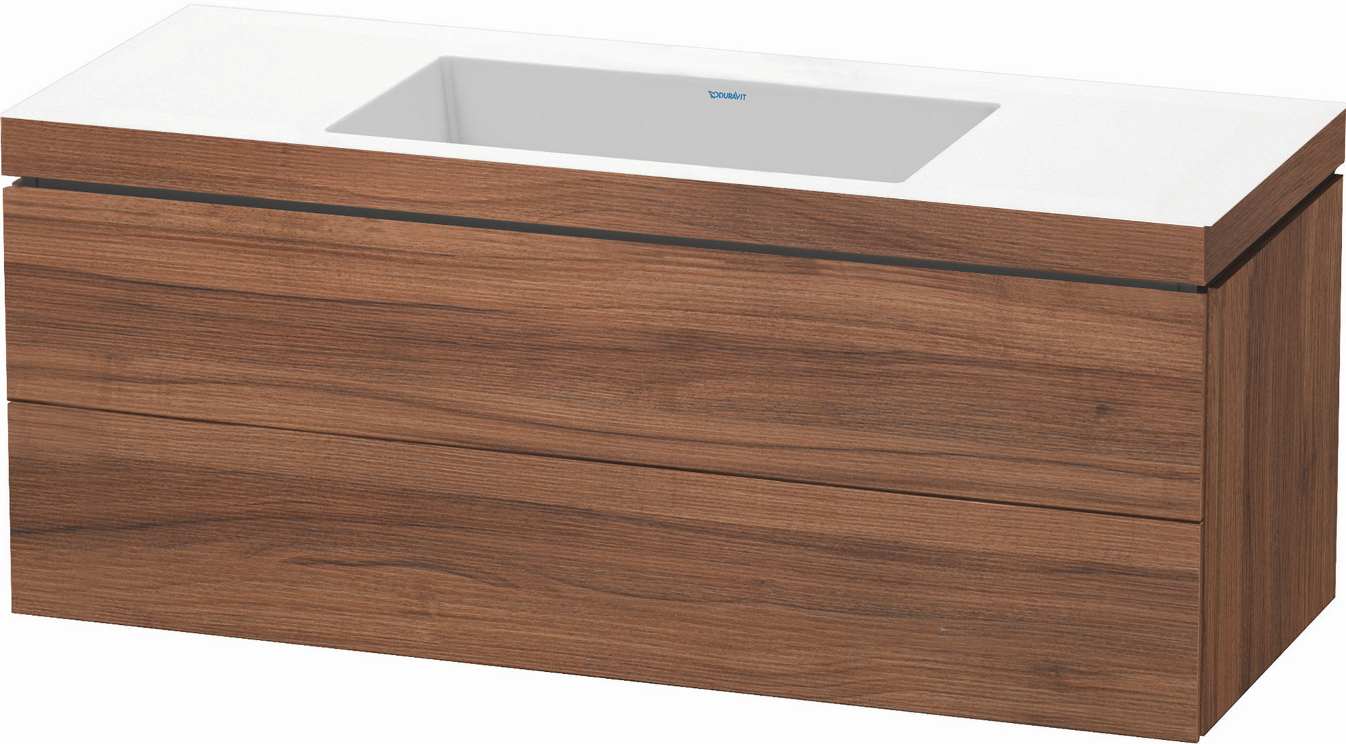 Duravit Waschtisch-Unterschrank c-bonded L-Cube 120 x 48 cm, ohne Hahnloch, nussbaum natur, 2 Schubkästen, wandhängend
