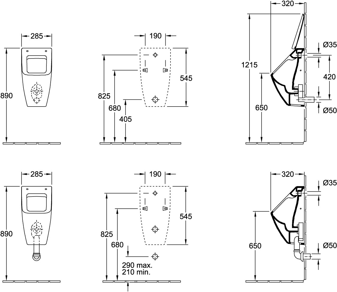 EN 13407, für verdeckte Befestigung wird mitgeliefert, Zulauf verdeckt, Ablauf je nach Typ des Absaugformstücks verdeckt