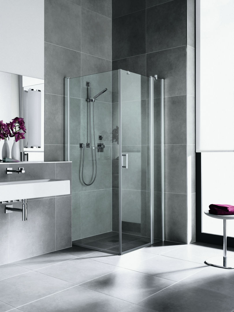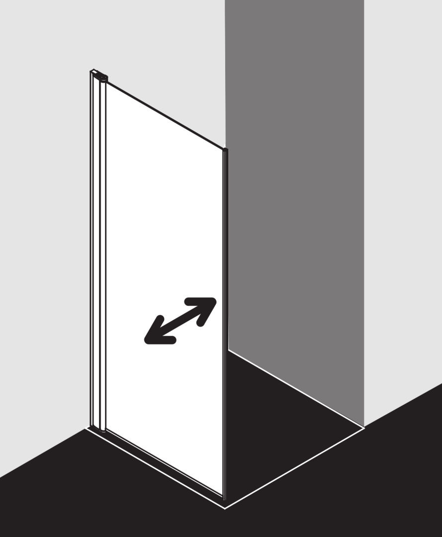 kombinierbar mit DI 2SR/L Pendel-Falttür, teilgerahmt, mit einem Glasflügel, ohne Bodenschwelle nach innen und außen öffnend, mit Bodenschwelle nur nach innen schwenkbar, Seitenwand zur Reinigung und Durchlüftung nach innen schwenkbar, Glasstärke 6 mm Einscheiben-Sicherheitsglas nach EN 12150, optional mit Pflegeleicht-Beschichtung, Profile aus eloxiertem Aluminium, Verstellmöglichkeit im Wandgelenkprofil 20 mm, Wandgelenkprofil mit Hebe-Senk-Mechanismus, durchgehende Magnetleiste und Dichtprofile, waagerechte Dichtleiste, mit 6 mm Bodenschwelle, mit Befestigungsmaterial, geprüft nach DIN EN 14428, waagerechte Schräge darf max. 5 mm betragen, Höhe mit Wandgelenkprofil 2017 mm