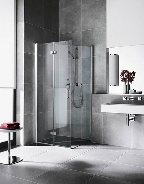 Kermi Seitenwand Diga beweglich 75 x 200 cm, silber hochglanz, ESG klar, rechts, auf Duschwanne ZKDITBR07520VAK