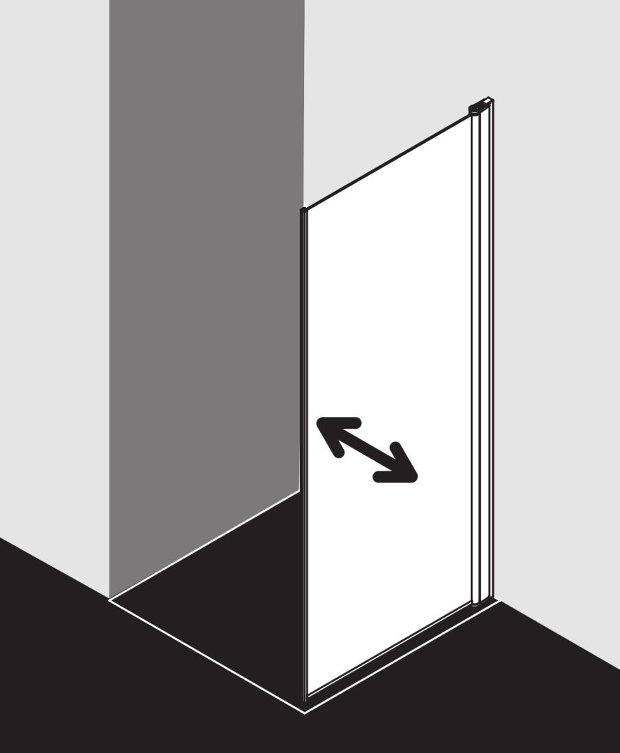 kombinierbar mit DI 2SR/L Pendel-Falttür, teilgerahmt, mit einem Glasflügel, ohne Bodenschwelle nach innen und außen öffnend, mit Bodenschwelle nur nach innen schwenkbar, Seitenwand zur Reinigung und Durchlüftung nach innen schwenkbar, Glasstärke 6 mm Einscheiben-Sicherheitsglas nach EN 12150, optional mit Pflegeleicht-Beschichtung, Profile aus eloxiertem Aluminium, Verstellmöglichkeit im Wandgelenkprofil 20 mm, Wandgelenkprofil mit Hebe-Senk-Mechanismus, durchgehende Magnetleiste und Dichtprofile, waagerechte Dichtleiste, mit 6 mm Bodenschwelle, mit Befestigungsmaterial, geprüft nach DIN EN 14428, waagerechte Schräge darf max. 5 mm betragen, Höhe mit Wandgelenkprofil 2017 mm