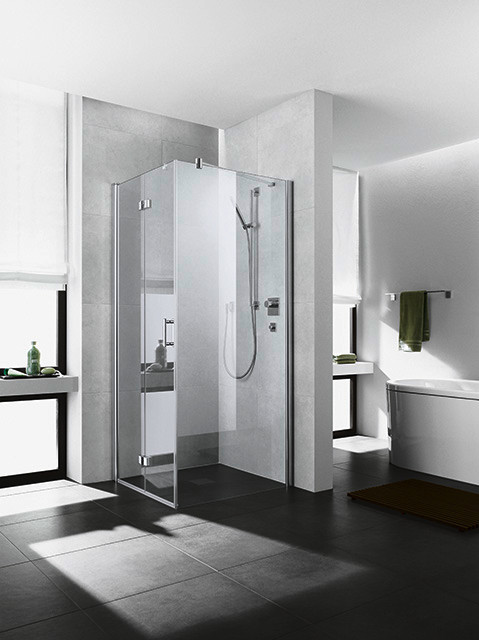 Kermi Seitenwand Diga 75 x 185 cm, silber hochglanz, ESG SR Opaco Clean, auf Duschwanne