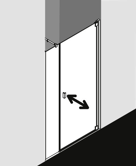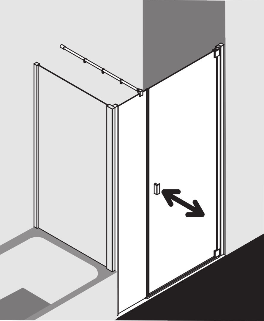 Kermi Pendeltür Raya 1-flügelig mit Festfeld 153 x 185 cm, silber hochglanz, ESG SR OpacoClean, rechts, auf Duschplatz