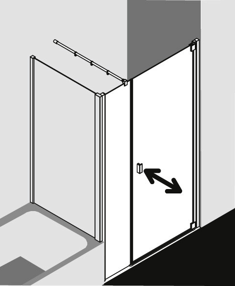 zum Einbau in Nische und kombinierbar mit RA TWD Seitenwand/RA TVD Seitenwand verkürzt auf Badewanne, teilgerahmt, mit einem Glasflügel, nach innen und außen öffnend und einem Festfeld, mit 45° Stabilisierung (innen), Glasstärke 6 mm Einscheiben-Sicherheitsglas nach EN 12150, optional mit Pflegeleicht-Beschichtung, Profile aus eloxiertem Aluminium, Gelenkbeschläge und Griffe aus Metall, Verstellmöglichkeit je Wandprofil 10 mm, im Gelenkbeschlag 20 mm, bei Oberfläche silber mattglanz Griffe, Gelenke und Verbindungen in chrom, Gelenkprofil mit Hebe-Senk-Mechanismus, durchgehende Magnetleisten und Dichtprofile, waagerechte Dichtleiste mit Wasserabpralleffekt, ohne Bodenschwelle (bodenfrei) installierbar, mit Befestigungsmaterial, geprüft nach DIN EN 14428, waagerechte Schräge darf max. 5 mm betragen