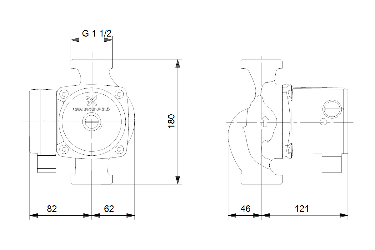 Grundfos Umwälzpumpe Serie 100 UPS 25-60 N, 230 V, G 1 1/2, 180 mm, Edelstahl GR96913085