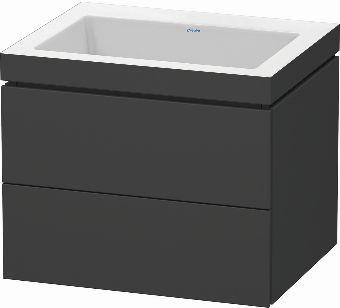 Duravit Waschtisch-Unterschrank c-bonded L-Cube 60 x 48 cm, ohne Hahnloch, graphit matt, 2 Schubkästen, wandhängend
