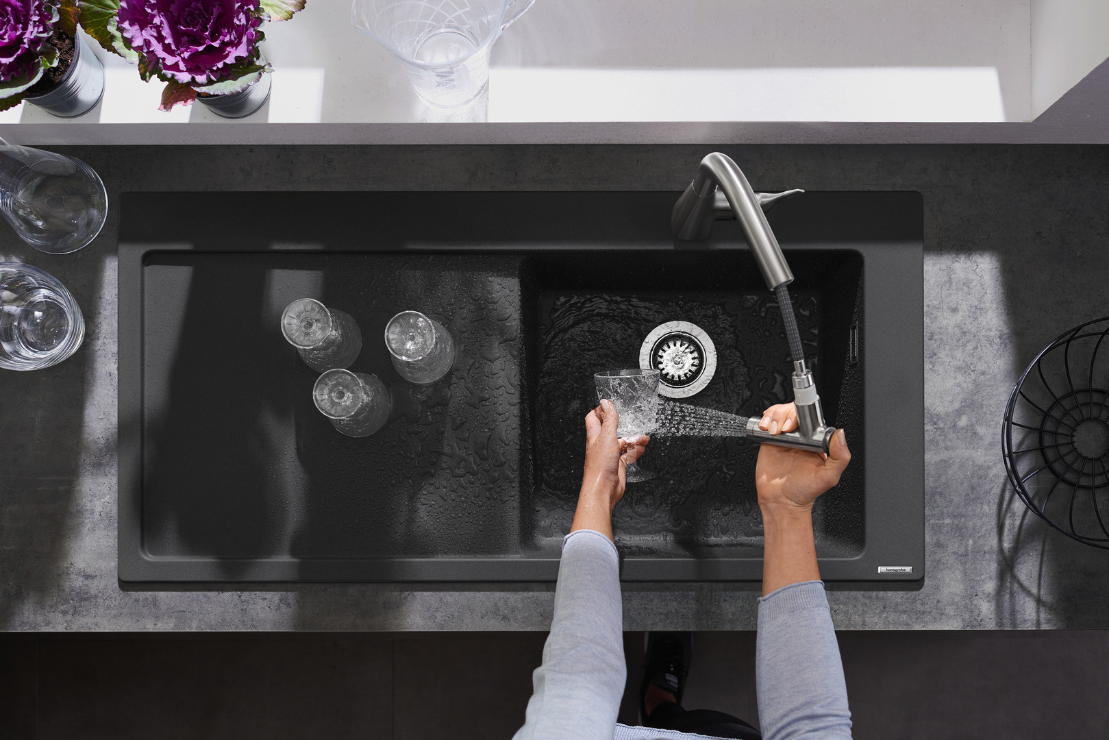 hansgrohe Einbauspüle 450 S514-F450 1030x490mm, 1 Hauptbecken rechts, Abtropffläche links, betongrau HG43314380
