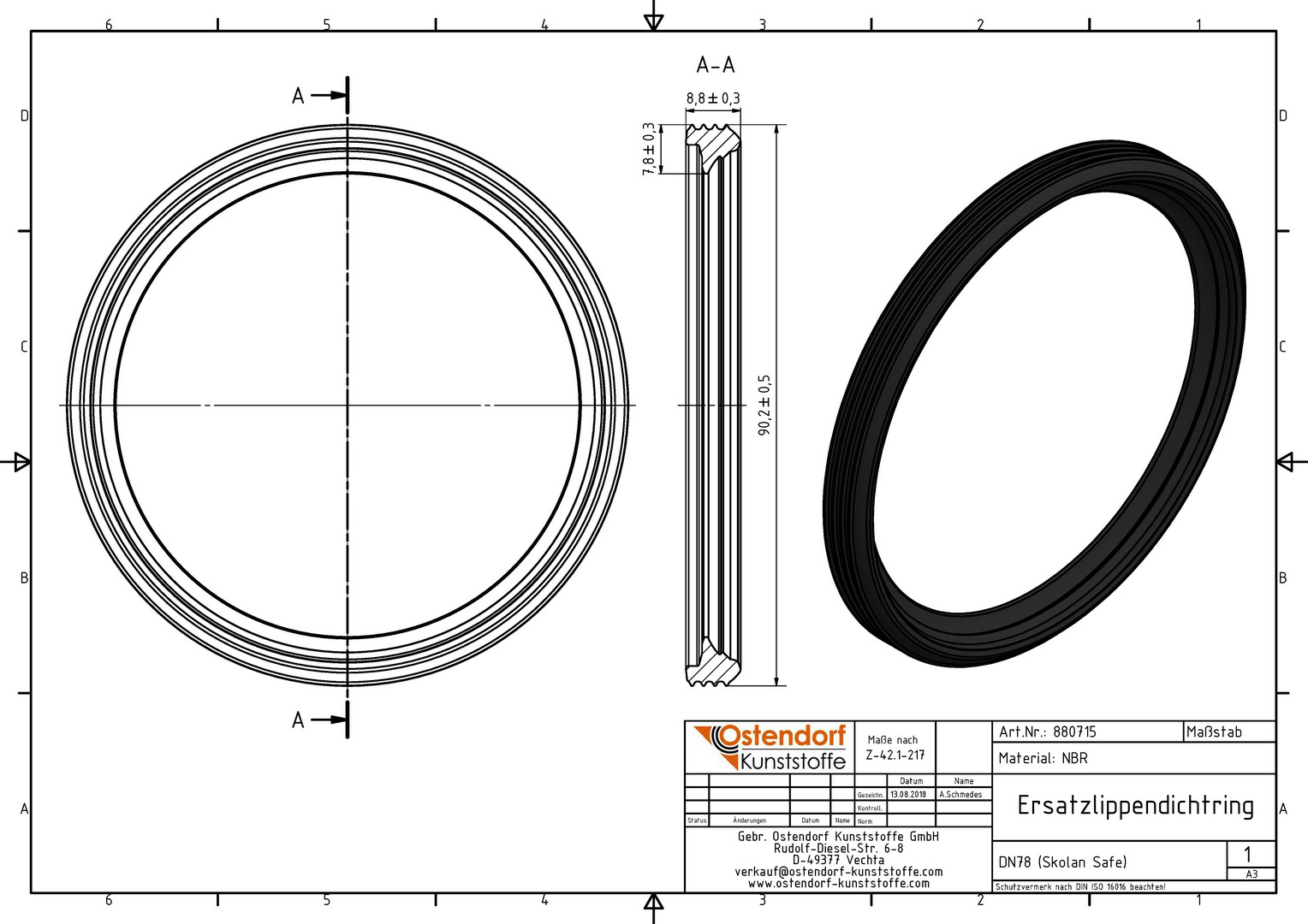 Ostendorf SKOLANsafe NBR-Dichtung ölbeständig, DN 78