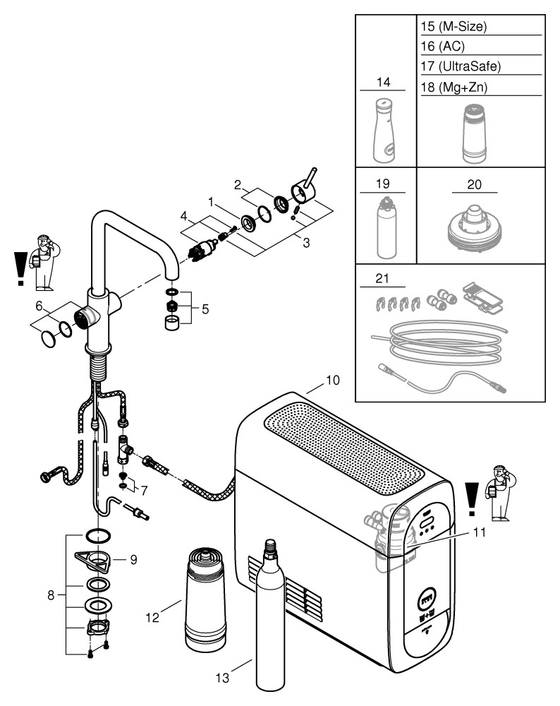 mit Filterfunktion, Einlochmontage, Drucktasten für 3 gefilterte und gekühlte Tafelwasserarten, still, medium, sprudelnd, Long-Life Oberfläche, SilkMove 28 mm Keramikkartusche, schwenkbarer Rohrauslauf, Schwenkbereich 150°, getrennte Wasserführung für gefiltertes und ungefiltertes Wasser, flexible Anschlussschläuche, Blue Home Kühler, liefert 3 l gekühltes, sprudelndes Wasser pro Stunde, 180 W Kühleinheit, 230 V, 50 Hz, Lautstärke im Standby Betrieb 44 dB(A), Schutzart IP21, benötigt Ventilationsöffnungen im Baden des Küchenschranks, Anzeige und Überwachung von Verbrauchsdaten, Filter- bzw. CO2-Kapazität über Watersystems App, Push-Benachrichtigung bei niedriger Filter- bzw. CO2-Kapazität, mit Bluetooth 4.0 und WIFI-Datenkommunikation, für Apple und Android Geräte, Reichweite bis zu 10 m abhängig von Wand- und Bodenbelägen, Blue Filter S-Size, Filterkopf mit flexibler Wasserhärteeinstellung für Regionen mit Wasserhärte über 9° dKH, für Regionen mit Wasserhärte unter 9° dKH bitte Aktivkohlefilter 40 547 001 bestellen, passende Filter: Blue Filter S-Size, M-Size, Blue Aktivkohlefilter, Blue UltraSafe Filter und Blue Magnesium und Zink Filter, Blue 425 g CO2-Flasche enthält Komponente, welche als Gefahrstoff gilt