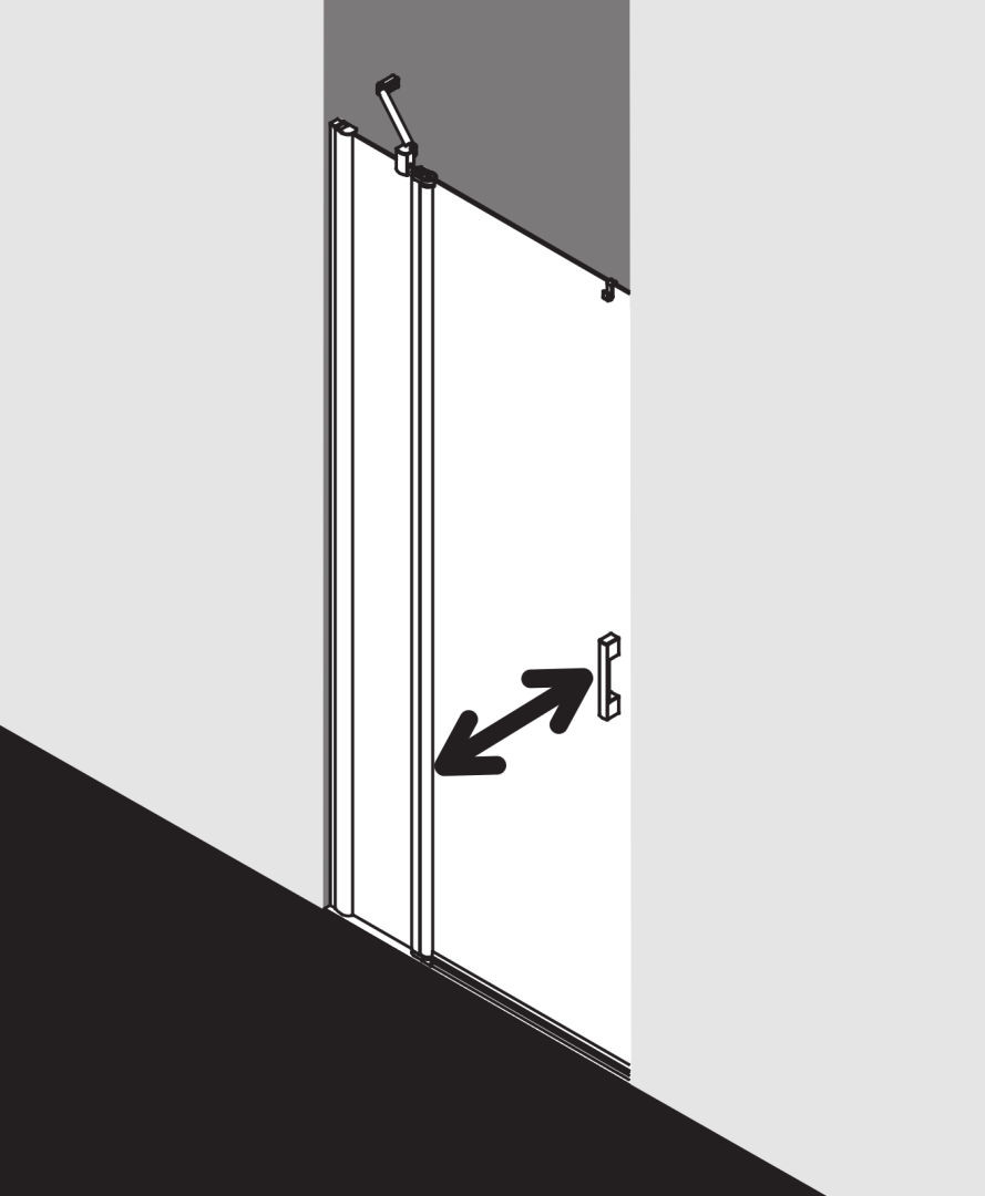 zum Einbau in einer Nische und Kombination mit Walk-In, teilgerahmte Tür mit einem Glasflügel, nach innen und außen öffnend und einem Festfeld, mit PEGA-Stabilisierung (innen), Verglasung mit 6 mm Einscheiben-Sicherheitsglas nach EN 12150, optional mit Pflegeleicht-Beschichtung, Profile aus eloxiertem Aluminium, Griffe aus Metall, Verstellmöglichkeit je Wandprofil 25 mm, Türprofil mit Hebe-Senk-Mechanismus, durchgehende Streifdichtung und Dichtprofile, waagerechte Dichtleiste mit Wasserabpralleffekt, mit Bodenschwelle (Höhe 6 mm), oder ohne Bodenschwelle (bodenfrei) installierbar, mit Befestigungsmaterial, ein transparenter Handtuchhalter-Haken, geprüft nach DIN EN 14428, verschlussseitig Schräge max. 2 mm, Schräge waagerecht max. 5 mm