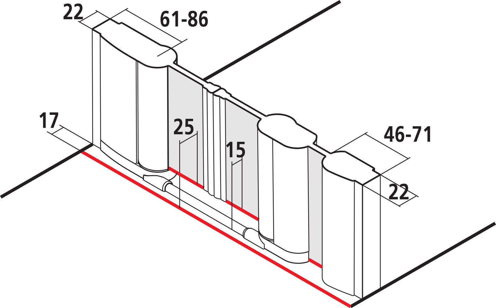 | Einbaubreite Tür für die Nischenmontage | 1450 - 1500 mm |