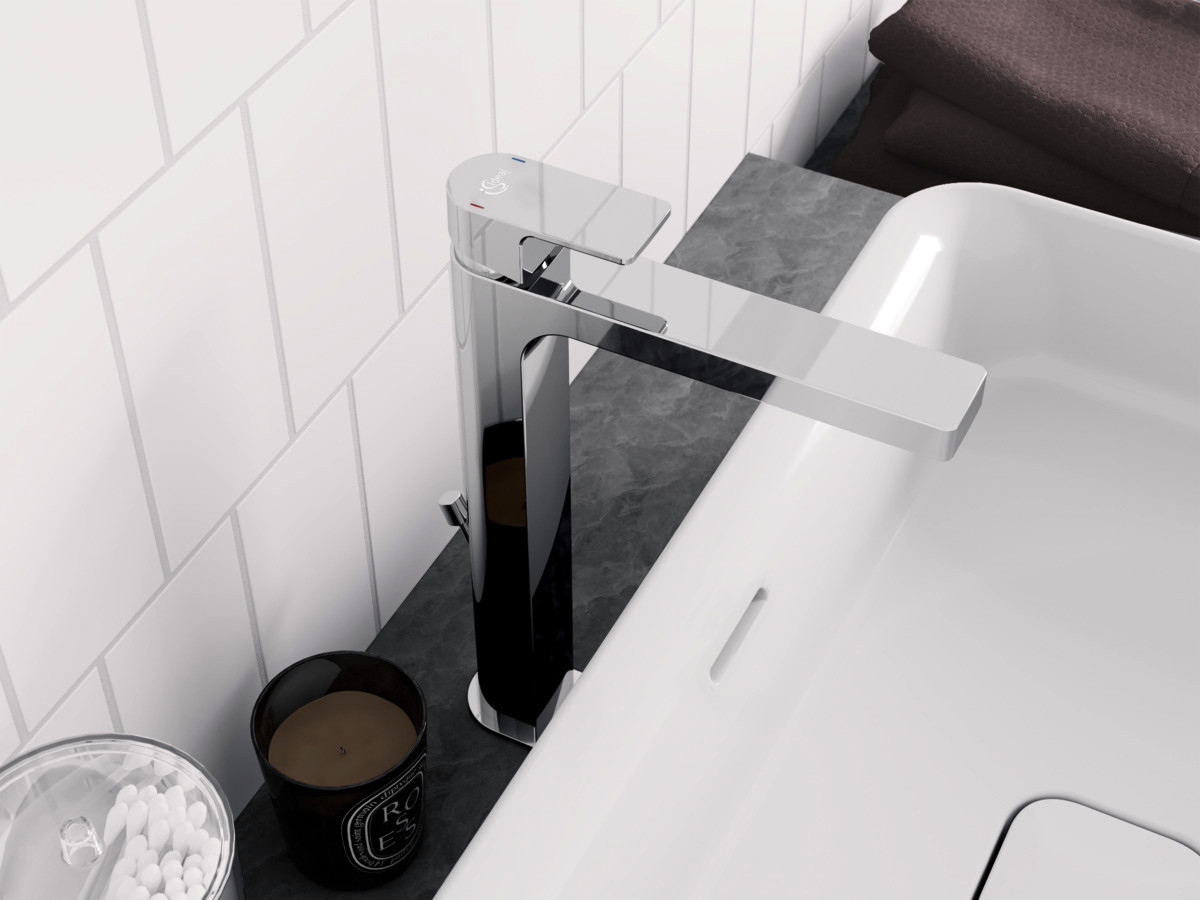 Ideal-Standard Waschtisch-Einhebelmischer Edge mit verlängertem Sockel, verchromt, BlueStart, ohne Ablaufgarnitur ISA7115AA