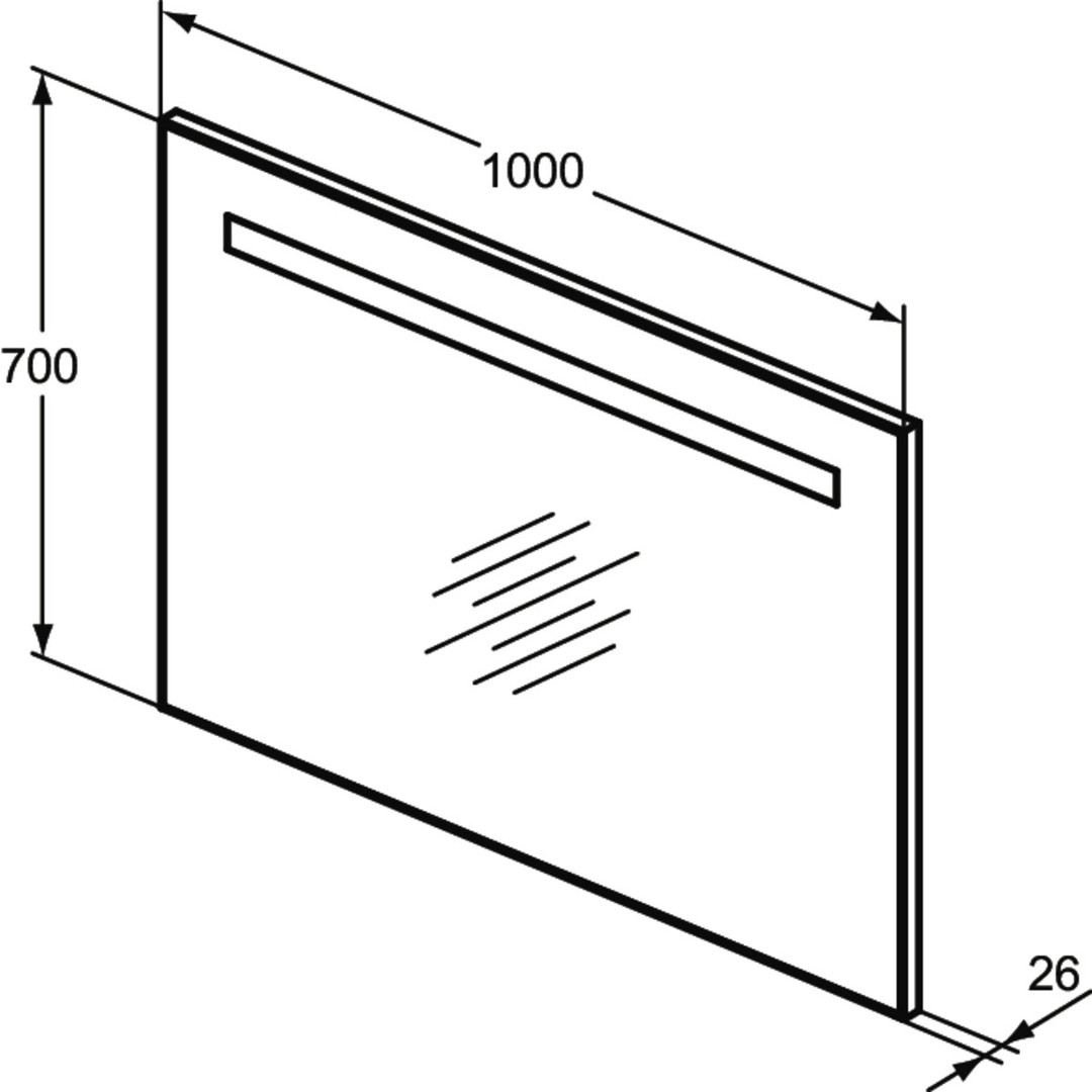 Ideal-Standard Wandspiegel Mirror & Light 100 x 70 x 2,6 cm, mit einseitiger Beleuchtung IST3343BH