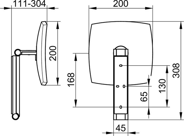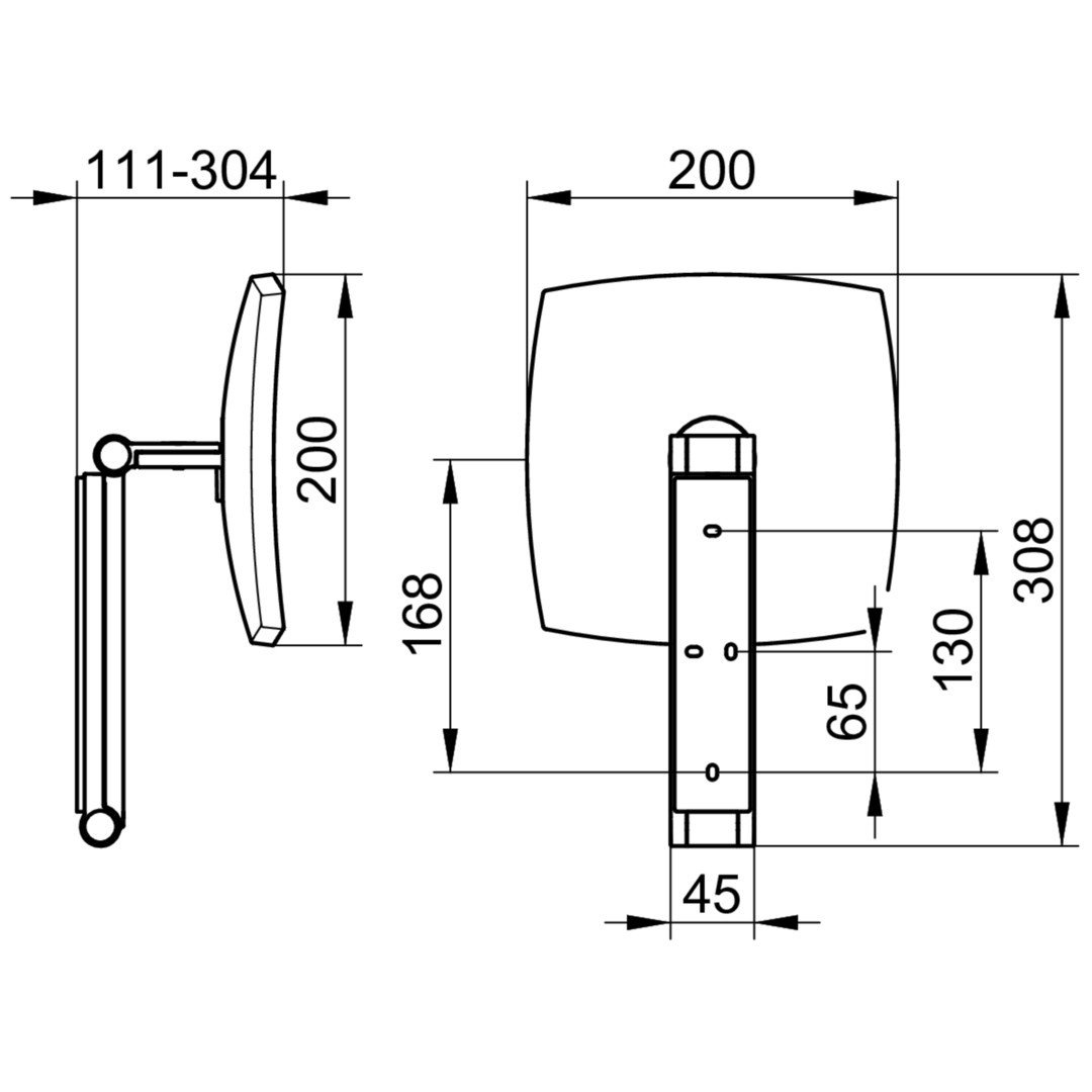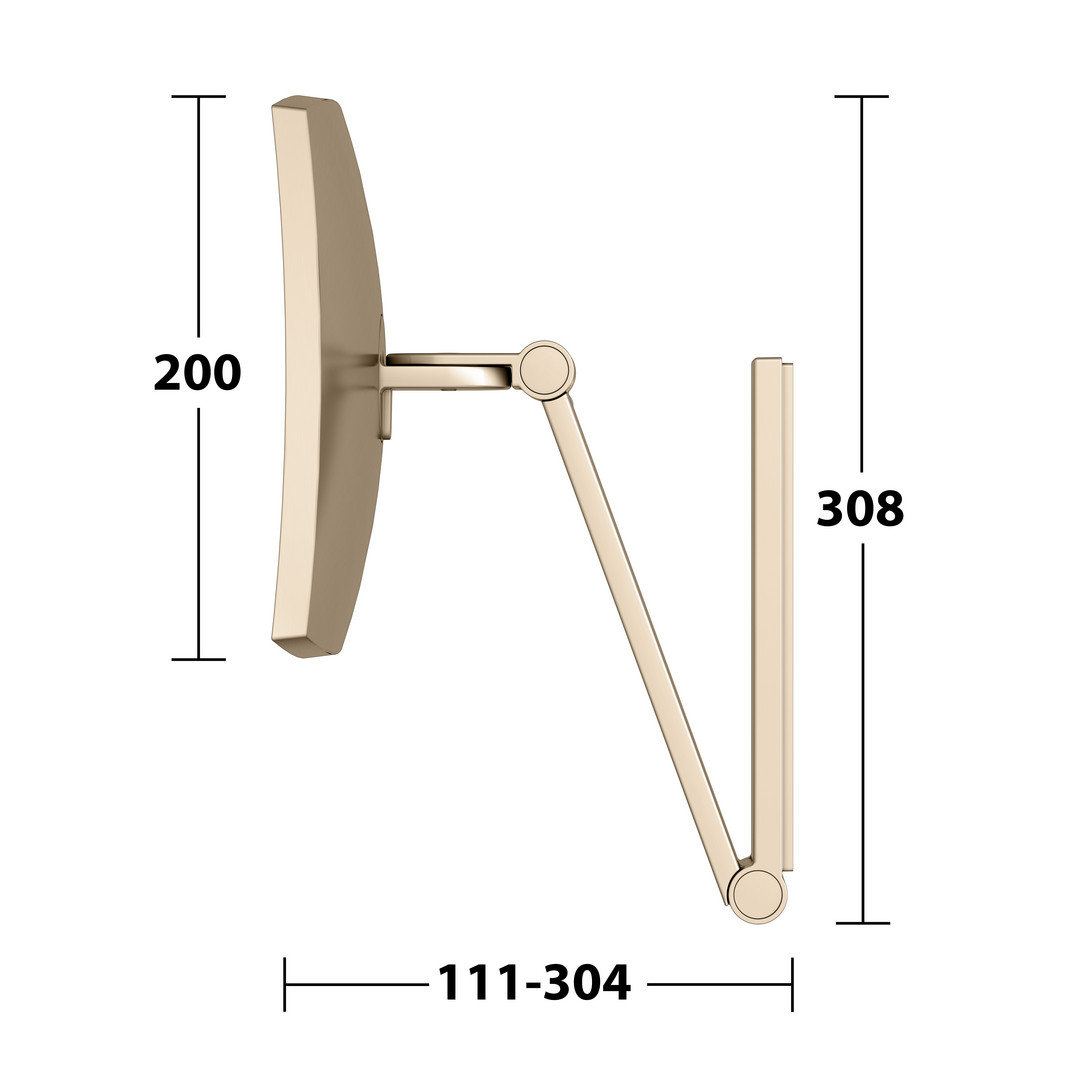 Wandmontage, eckig, 3-dimensionaler Gelenkarm, Spiegel einseitig, konkav, Vergrößerungsfaktor x5