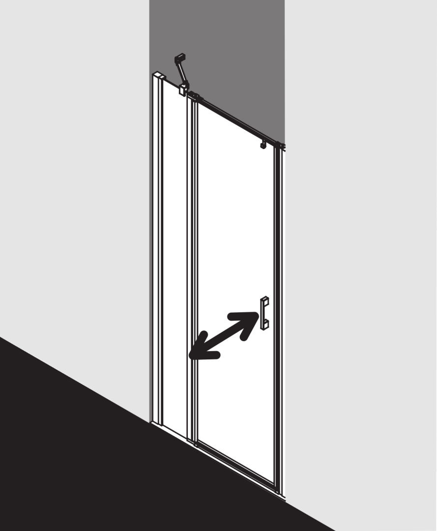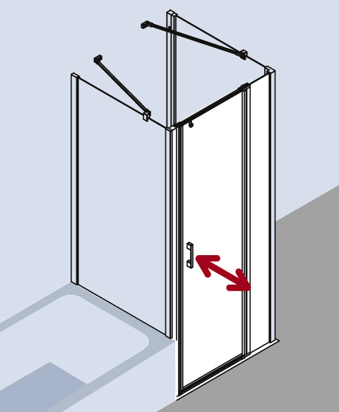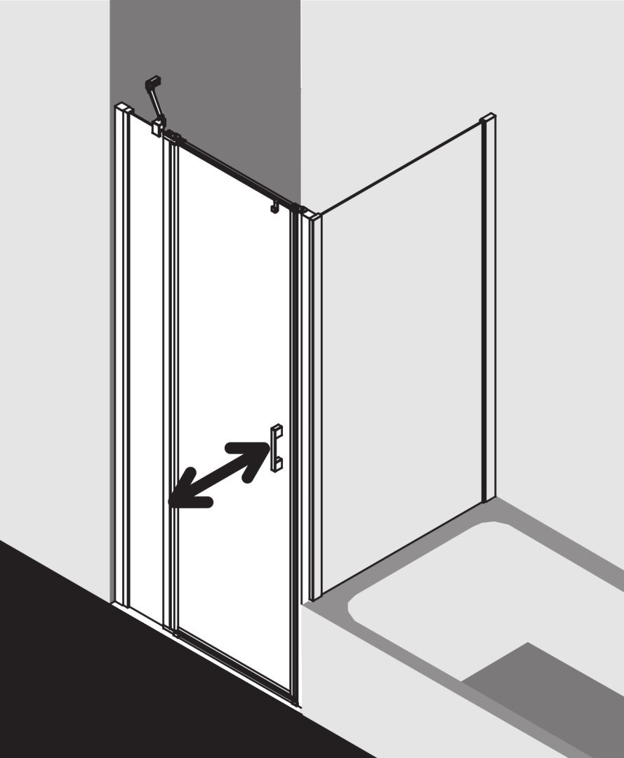 zum Einbau in einer Nische und zur Konbination mit LI TWD Seitenwand/LI TVD Seitenwand verkürzt auf Badewanne, teilgerahmt, mit einem Glasflügel, nach innen und außen öffnend, mit einem Festfeld, mit Zugstab und Stabilisierung (innen), ohne Zugstab installierbar, Ecke ohne Zugstab mit LI TWD und zusätzlicher Liga-Stabilisierung (innen) ZDSS VSS LI, Glasstärke 5 mm Einscheiben-Sicherheitsglas nach EN 12150, optional mit Pflegeleicht-Beschichtung, Profile aus eloxiertem Aluminium, Griffe und Gelenke aus Metall, bei Oberfläche silber mattglanz Griffe, Gelenke und Anschlüsse für Zugstab und Bodenschwelle in chrom, Verstellmöglichkeit je Wandprofil 25 mm, Gelenk mit Hebe-Senk-Mechanismus, durchgehende Magnetleisten und Dichtprofile, waagerechte Dichtleiste mit Wasserabpralleffekt, ohne Bodenschwelle (bodenfrei) installierbar, mit Befestigungsmaterial und transparentem Handtuchhalter-Haken, geprüft nach DIN EN 14428, waagerechte Schräge darf max. 5 mm betragen