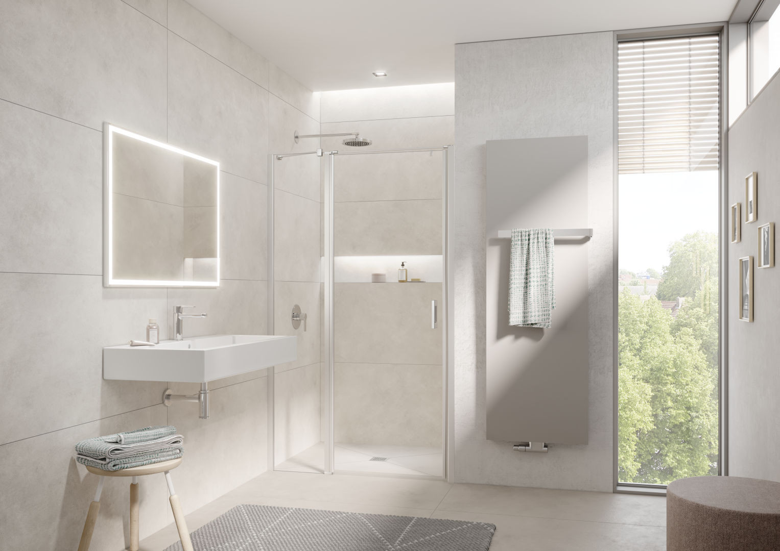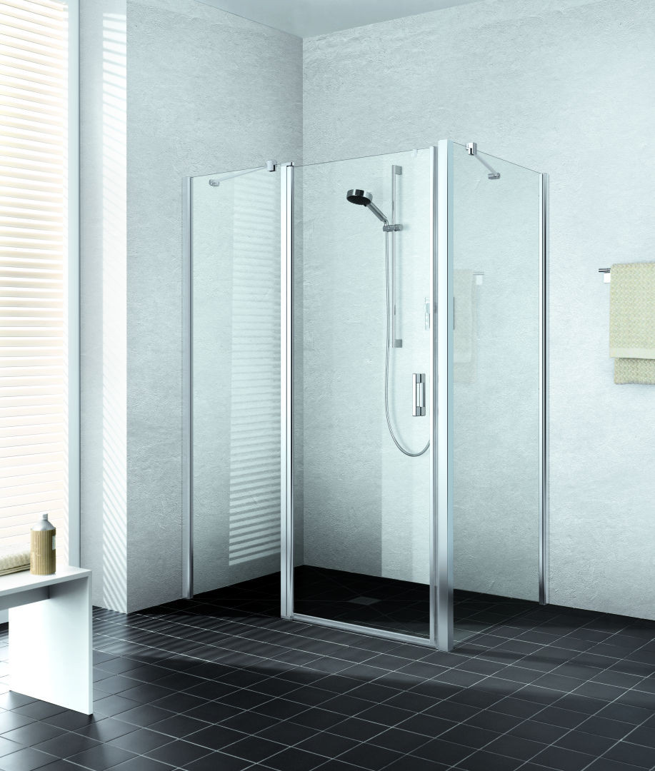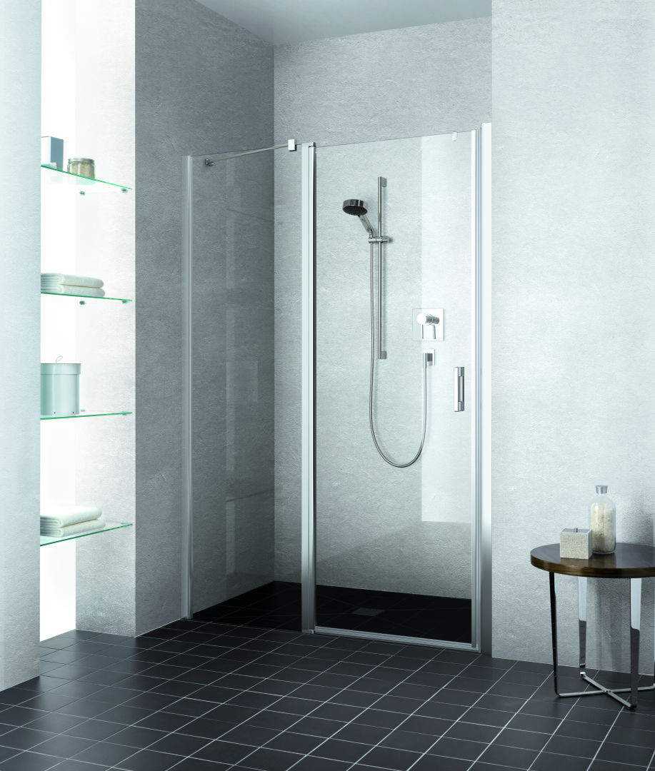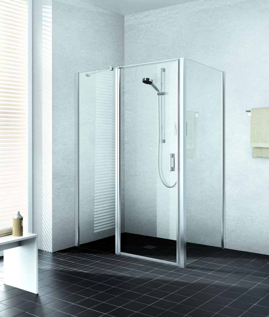 Kermi Pendeltür LIGA 1-flügelig mit Festfeld 83 x 185 cm, silber mattglanz, ESG klar Clean, links, auf Duschplatz