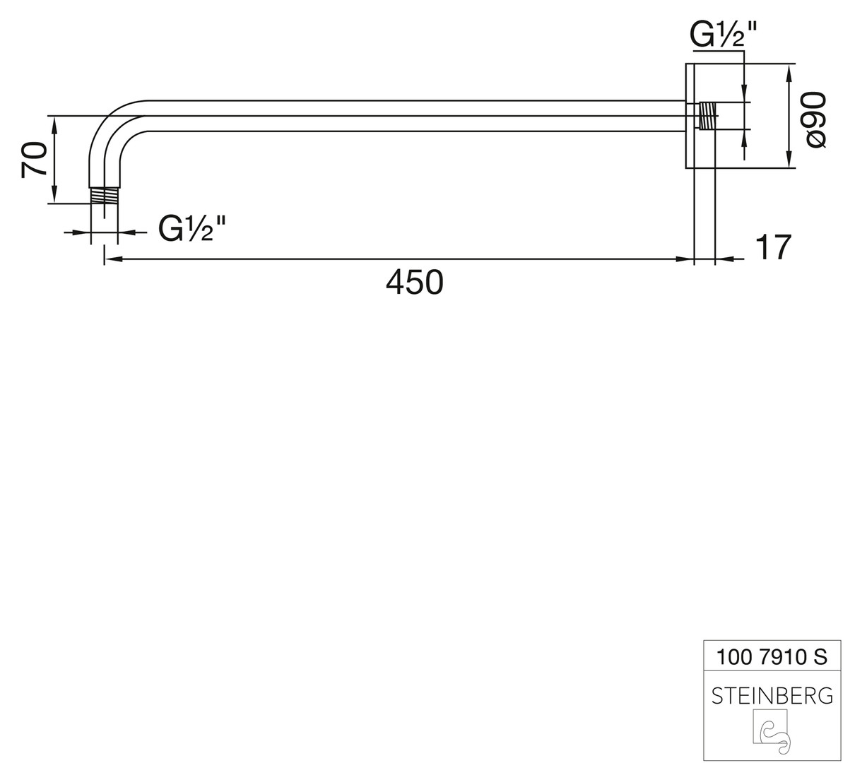 Steinberg Brausearm Serie 100 rund, Wandmontage, 450 mm, mit verstärkter Wandhalterung, chrome ST1007910