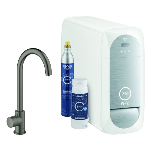 GROHE Spültisch-Einhebelmischer Blue Home C-Auslauf, Mono Starter Kit, hard graphite gebürstet